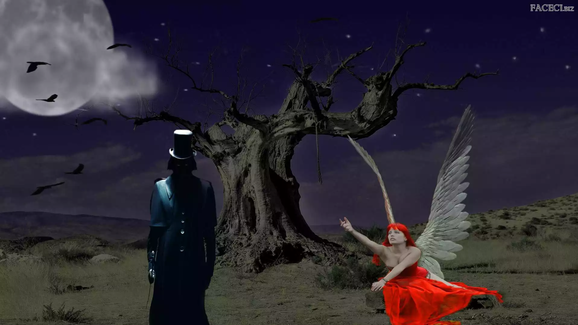 Czarna, Anioł, Drzewo, Postać - faceci.biz